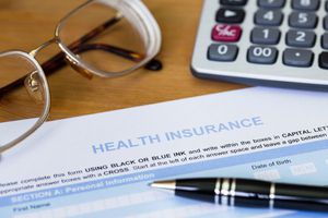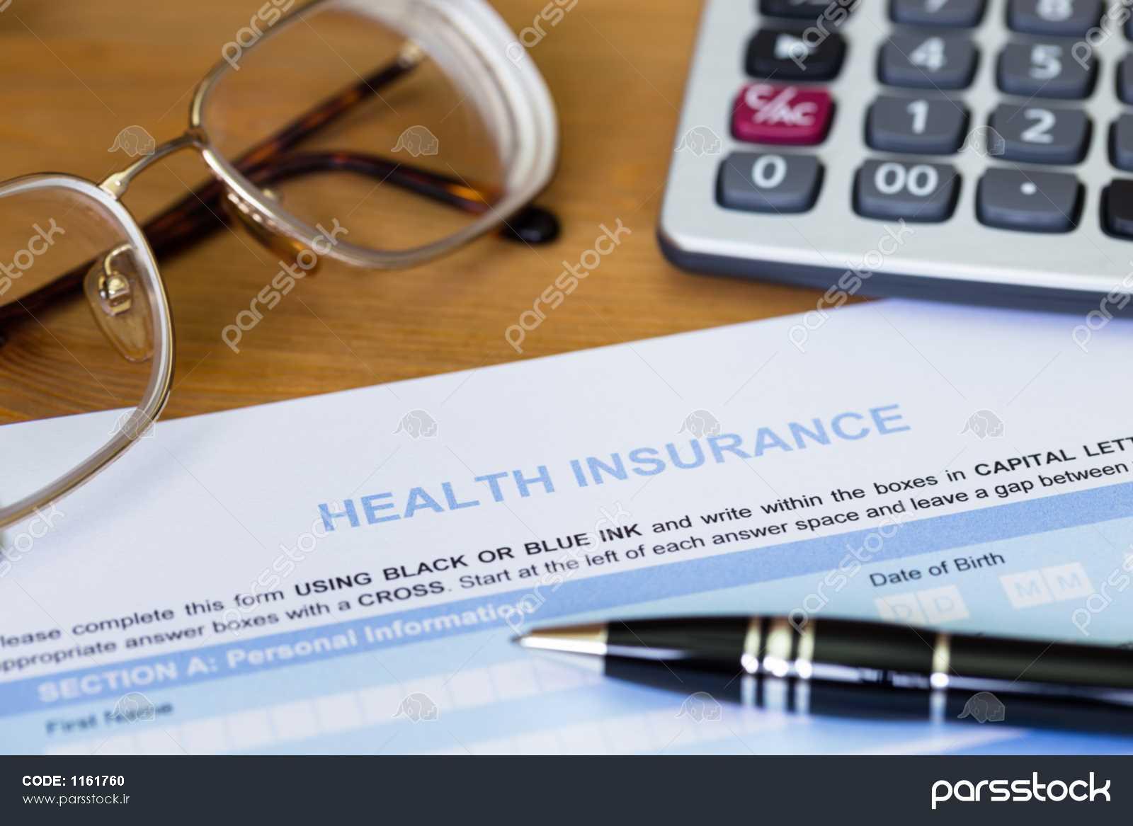 فرم درخواست بیمه درمانی با خودکار ماشین حساب و عینک