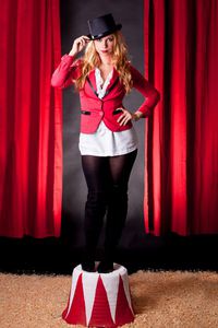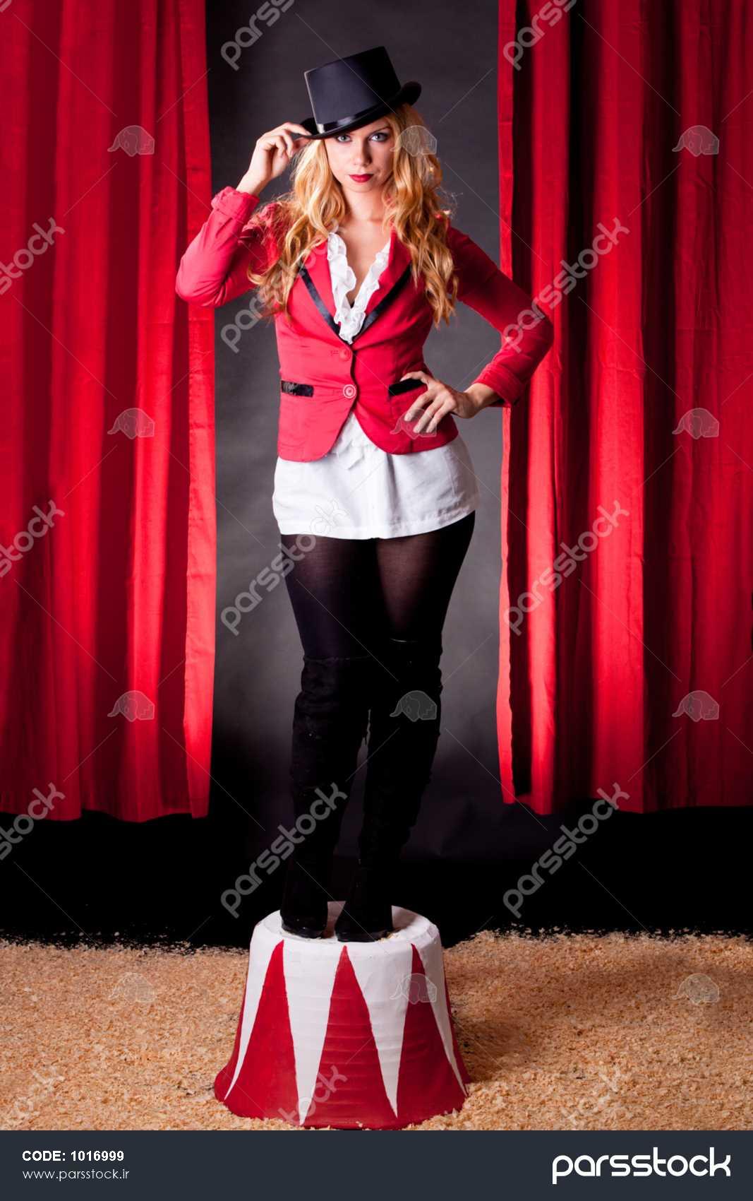 پرتره عاشقانه زن جذاب با چهره هنری و گل در موهایش مجری زن با میکروفن صحنه تئاتر با پرده های قرمز و نورافکن روی زمین چوبی صحنه فضای داخلی تئاتر با تزئینات کاغذ دیواری دراماتیک آسمان مجری صحنه موشن روژ با پوشیدن لباس سیاه و با لهجه پر و کلاه صورتی با روبان بزرگ نگه داشتن گردن خود را با دست راست خود پرتره مردی که کلاه نی و پیراهن سفید از نظر عاطفی آکاردئونی پوشیده است پشت صحنه سیرک به سبک رترو چمدان درام داخلی نمایش همه