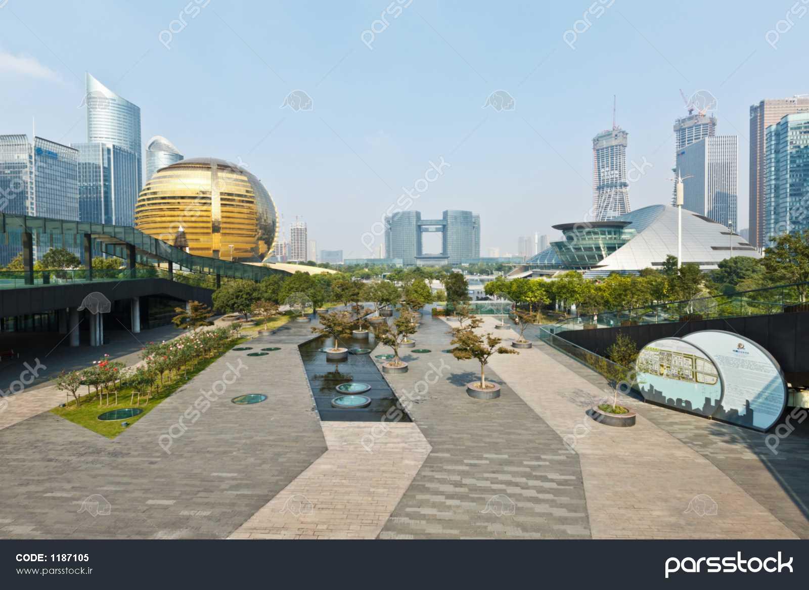 هانگژو - 7 اکتبر منطقه تجاری مرکزی شهر جدید کیان جیانگ در 7 اکتبر 2014 هانگژو چین مرکز شهروندان هانگژو مرکز کنفرانس بین المللی تئاتر بزرگ همه اینجا هستند