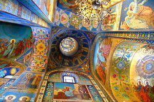 فضای داخلی کلیسای ناجی بر روی خون های ریخته شده در خیابان پترزبورگ روسیه