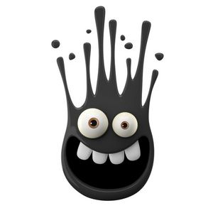 شی رنگ سه بعدی افتادن قطره سیاه کاراکتر پاشش رنگ عنصر طراحی خنده دار برچسب بیان جدا شده در پس زمینه سفید