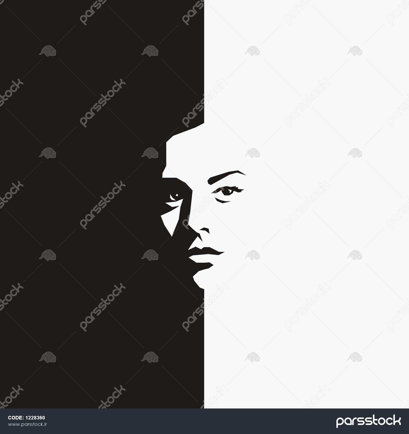 زن f - نیمه سیاه نیمه سفید - وکتور
