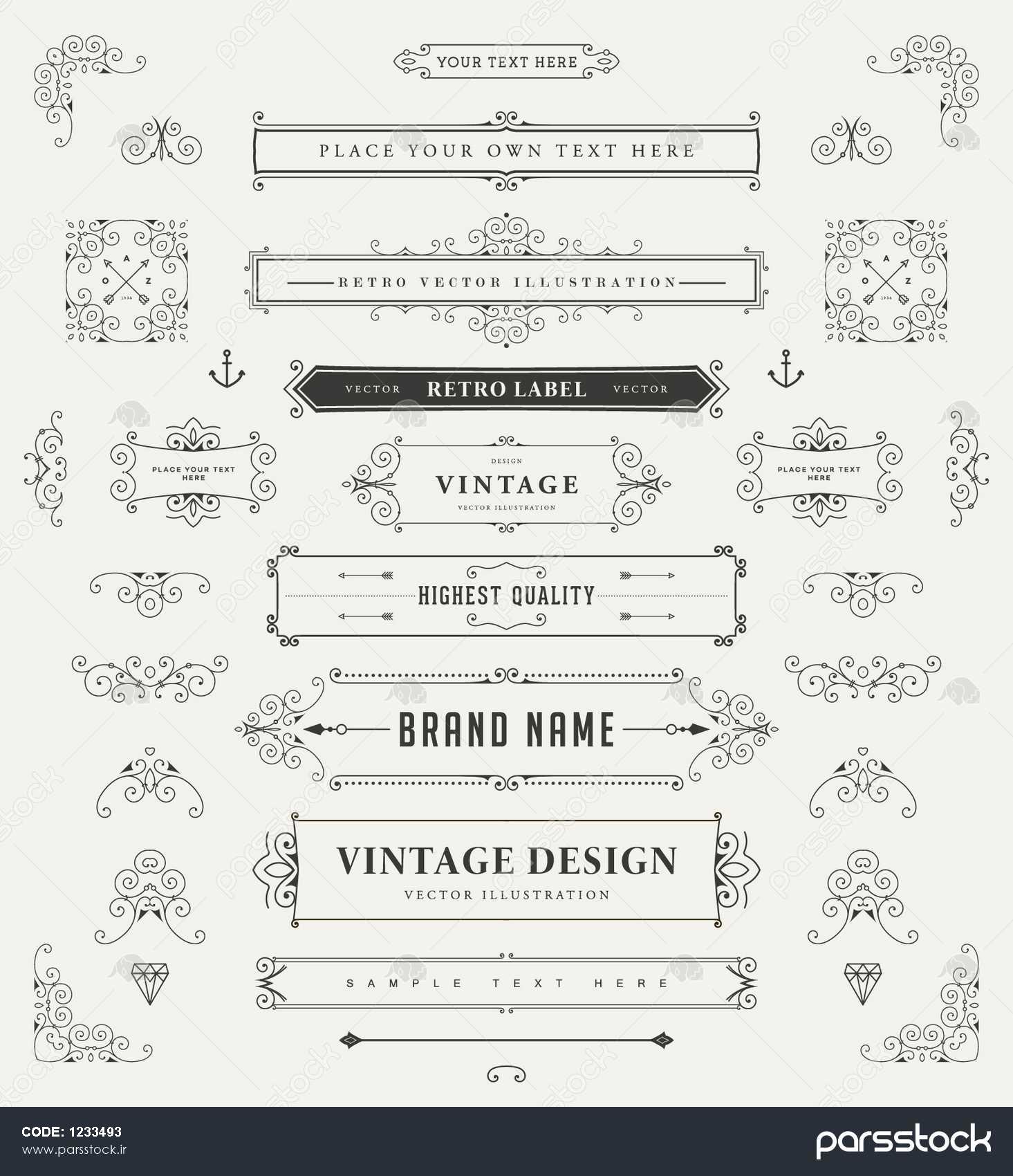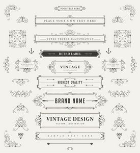 مجموعه ای از عناصر دکوراسیون قدیمی زیورآلات و قاب های خوشنویسی را شکوفا می کند مجموعه طراحی سبک رترو برای دعوت نامه ها بنرها پوسترها پلاکاردها نشان ها و لوگوتایپ ها