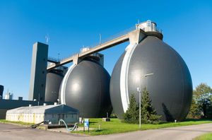 نصب هضم لجن در کارخانه فاضلاب در اینجا متان تولید و برای تامین انرژی نیروگاه استفاده می شود