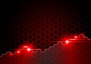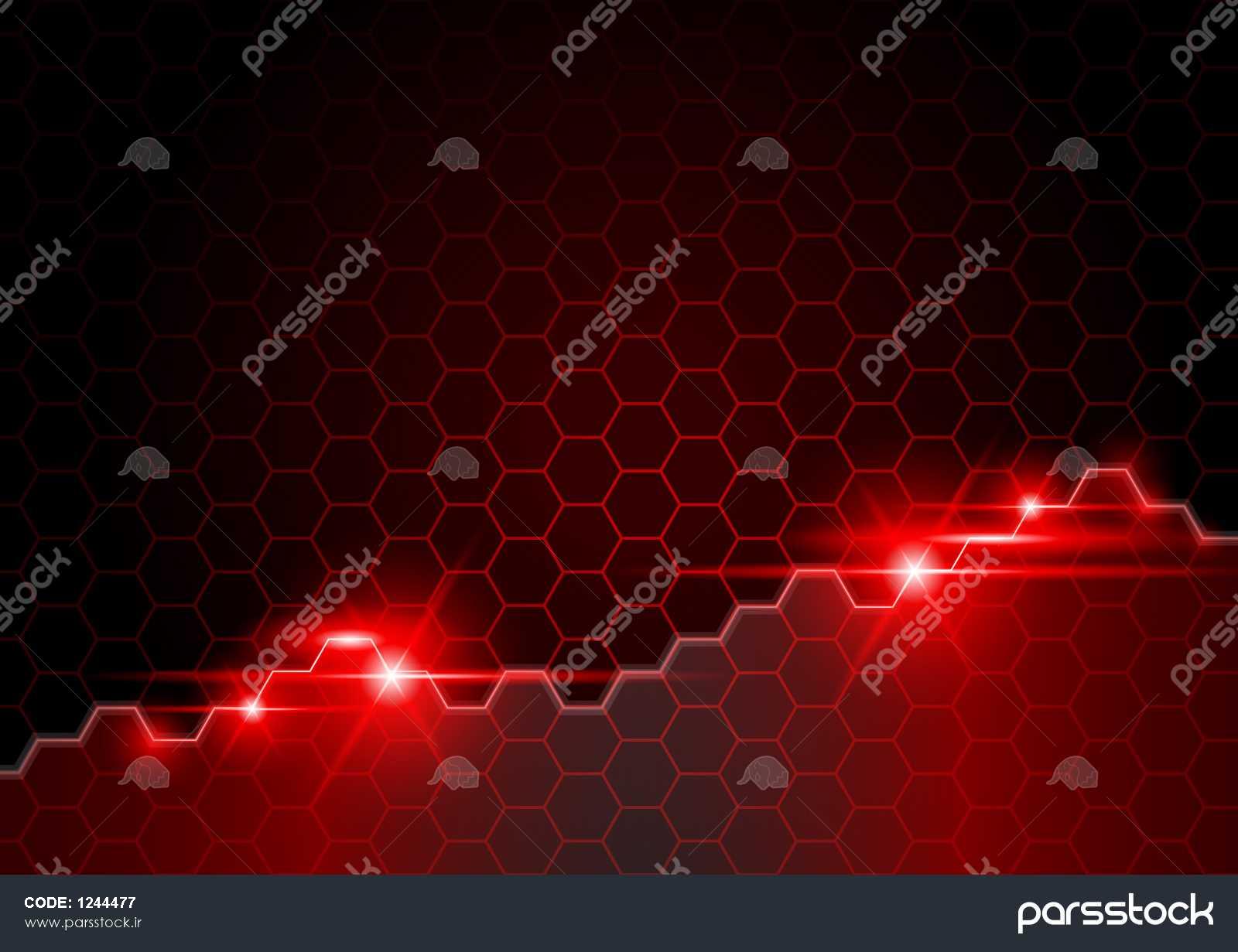 پس زمینه انتزاعی قرمز با بافت شش ضلعی و چراغ های درخشان - وکتور
