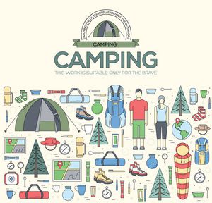 مجموعه تجهیزات کمپینگ مفهوم قالب دایره اینفوگرافیک طراحی آیکون برای محصول یا طرح شما برنامه های کاربردی وب و موبایل وکتور مسطح با تصویر سایه بلند در پس زمینه آبی