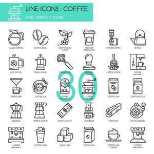 قهوه مجموعه آیکون های خط نازک نماد پیکسل کامل