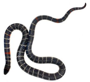 مار زمینی سیاه atractus elaps این مار یک مرجان کاذب با نوارهایی مانند مار مرجانی است اما بی ضرر است
