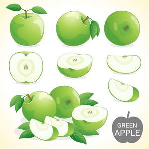 مجموعه میوه سیب سبز با برگ در وکتور و سبک های مختلف