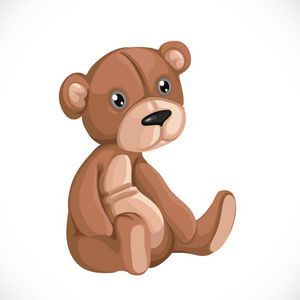 خرس عروسکی اسباب بازی روی زمین جدا شده روی پس زمینه سفید نشسته است