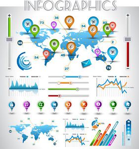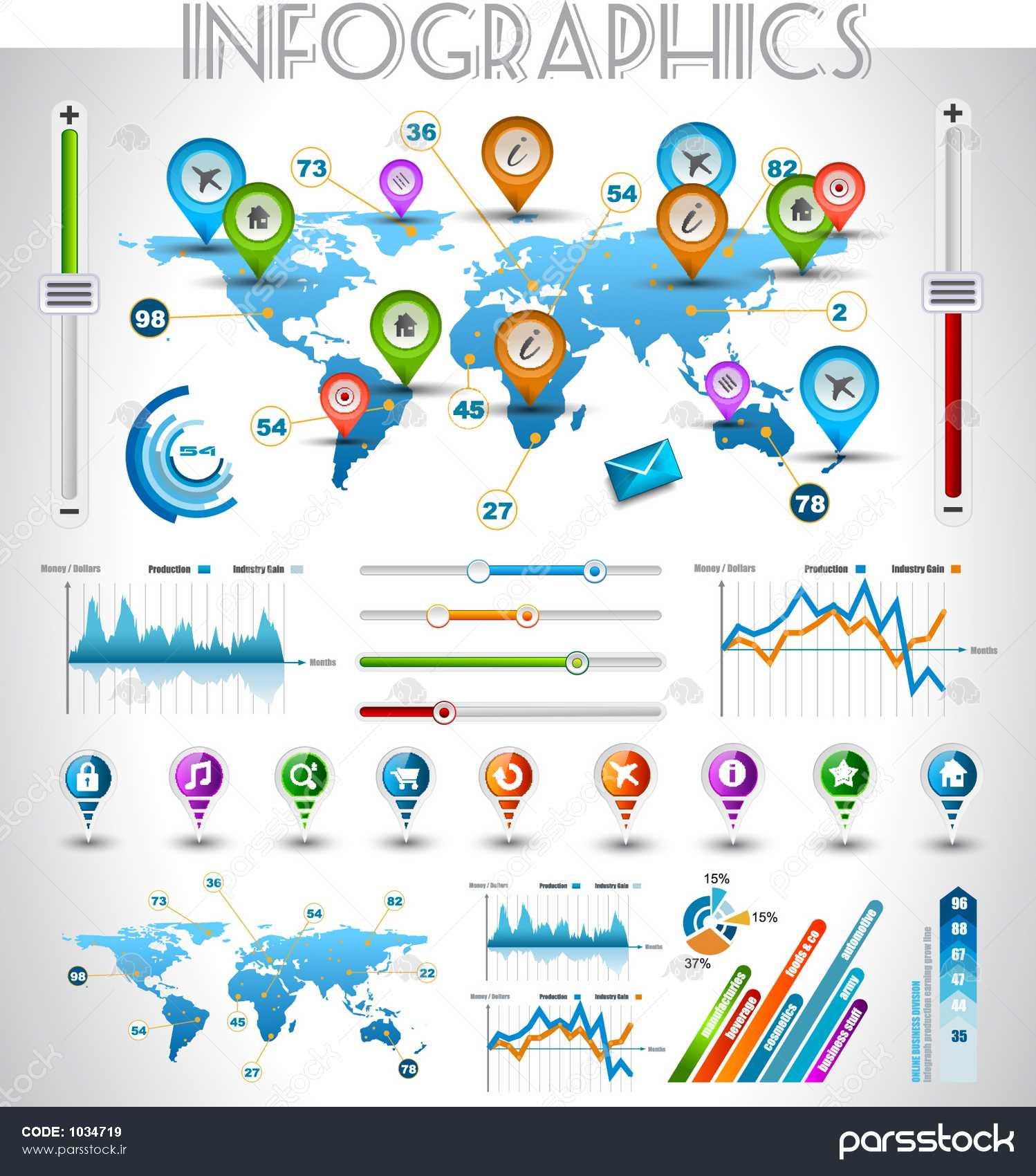 عناصر اینفوگرافیک - مجموعه ای از برچسب های کاغذی آیکون های فناوری پردازش ابری نمودارها برچسب های کاغذی فلش ها نقشه جهان و غیره ایده آل برای نمایش داده های آماری