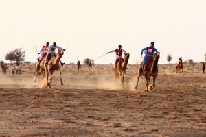 JAISALMER INDIA FEB 25 مسابقه شتر در تاریخ 25 فوریه 2013 در Jaisalmer هند این رویداد بخشی از جشنواره صحرا است که در زمستان برای جذب توریست های داخلی و بین المللی برگزار می شود