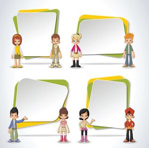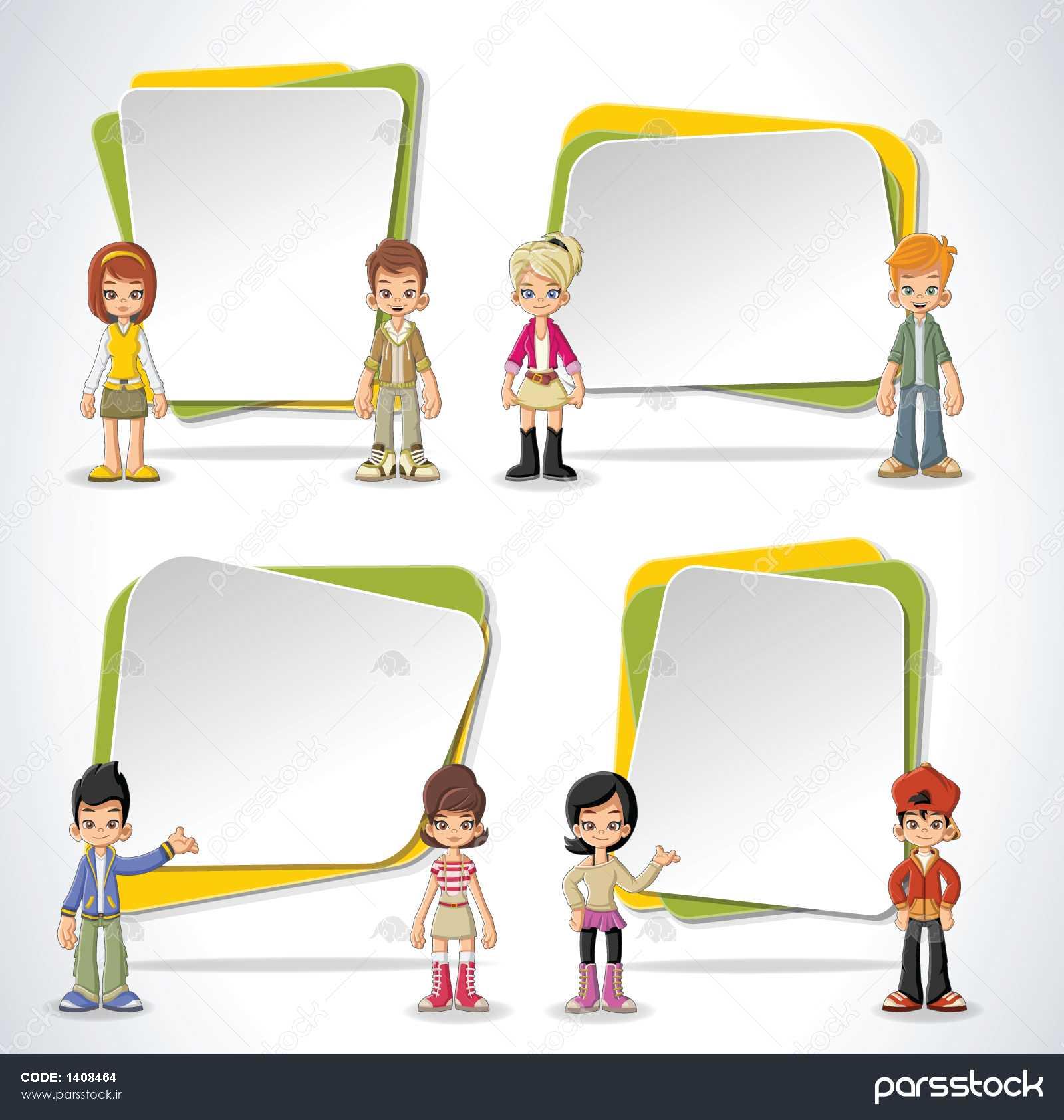 آگهی ها بردار پس زمینه با کارتون کودکان طراحی قاب جعبه متن