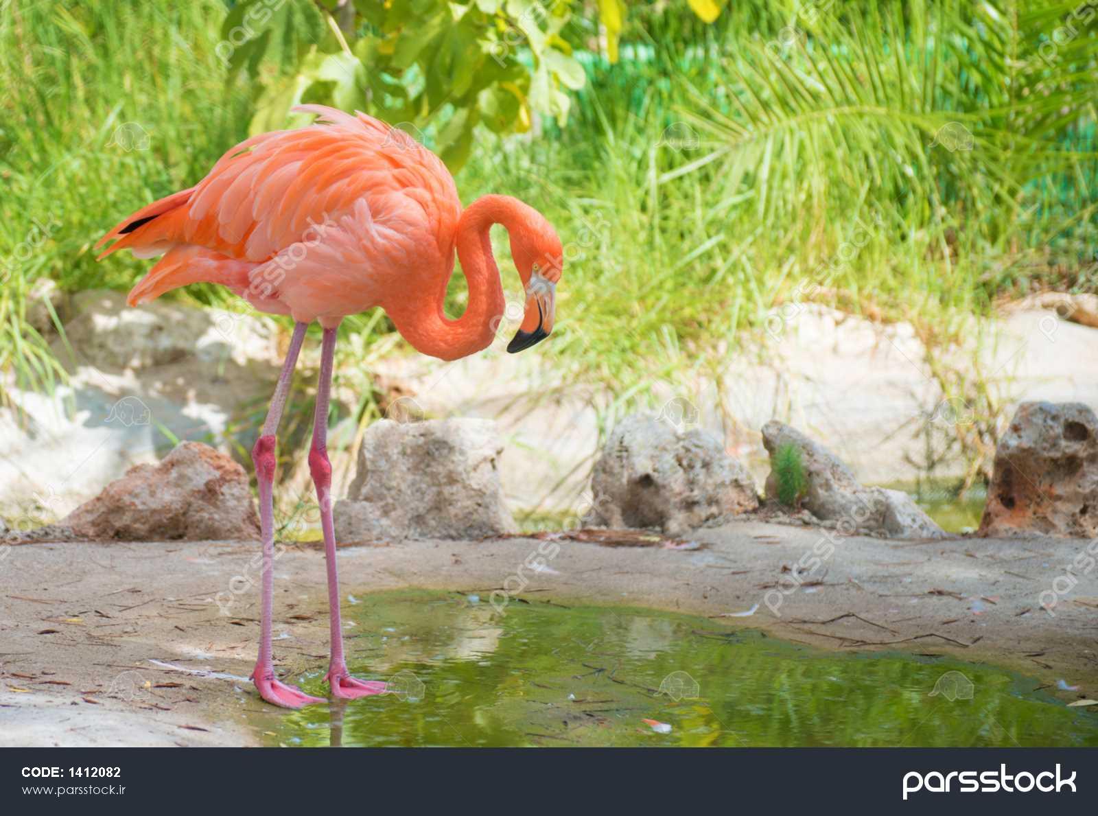 فلامینگو صورتی در نزدیکی حوضچه در پارک ملی