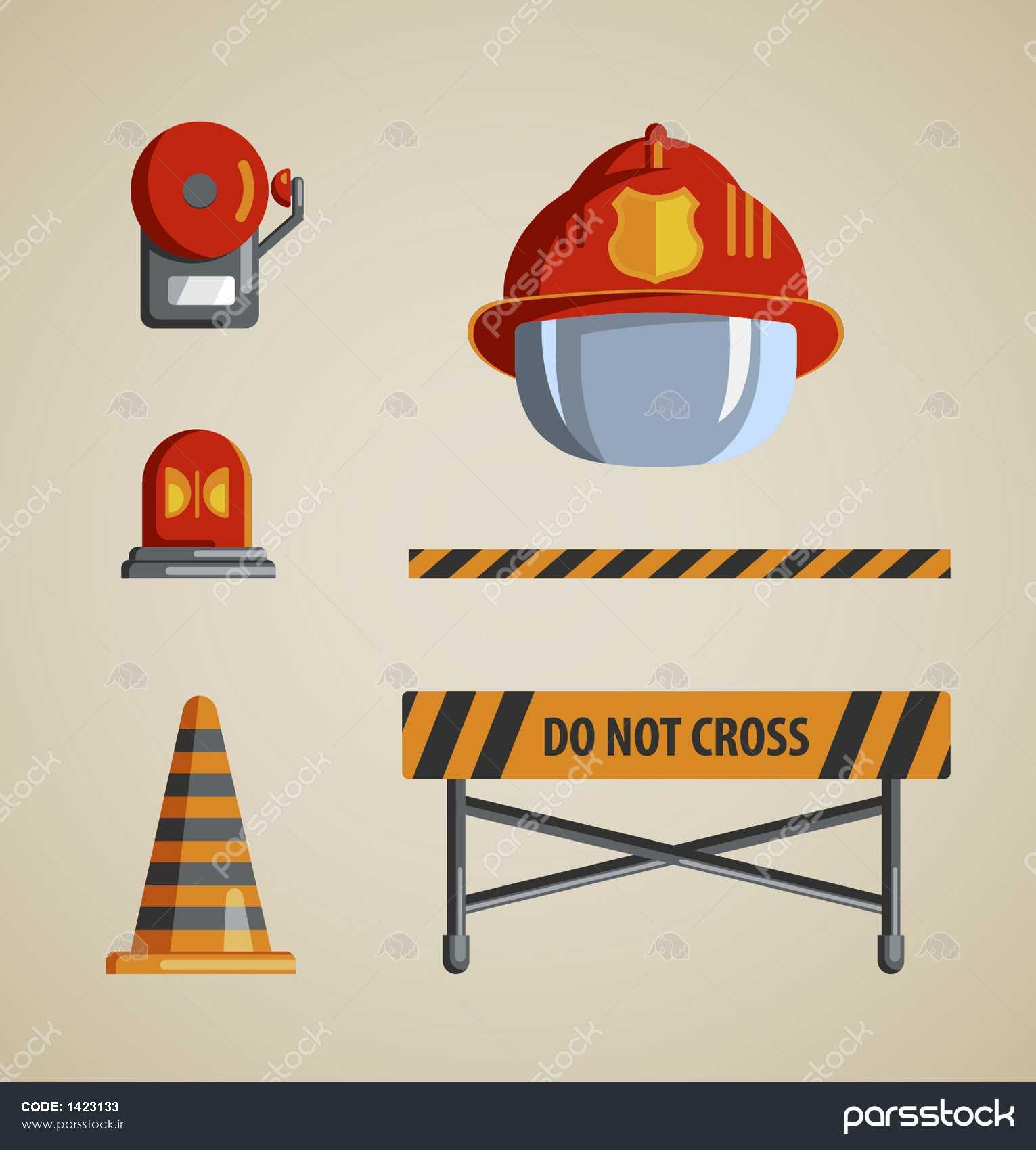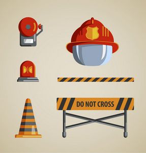 آیکون بردار آیکون های تخت رنگی در پس زمینه سبک شنی ابزار تجهیزات و یا آتش نشان داوطلب آهنربا یخچال تی شرت چاپ مجموعه ای برای کولاژ تصویر برای کتاب های کودکان است