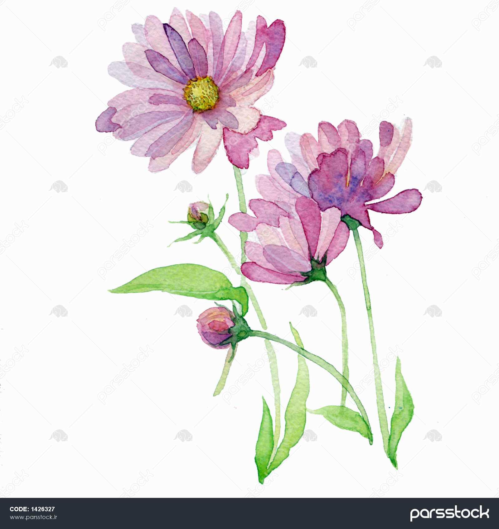 نقاشی گل بابونه نقاشی نقاشی بر روی کاغذ جدا شده بر روی زمینه سفید