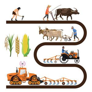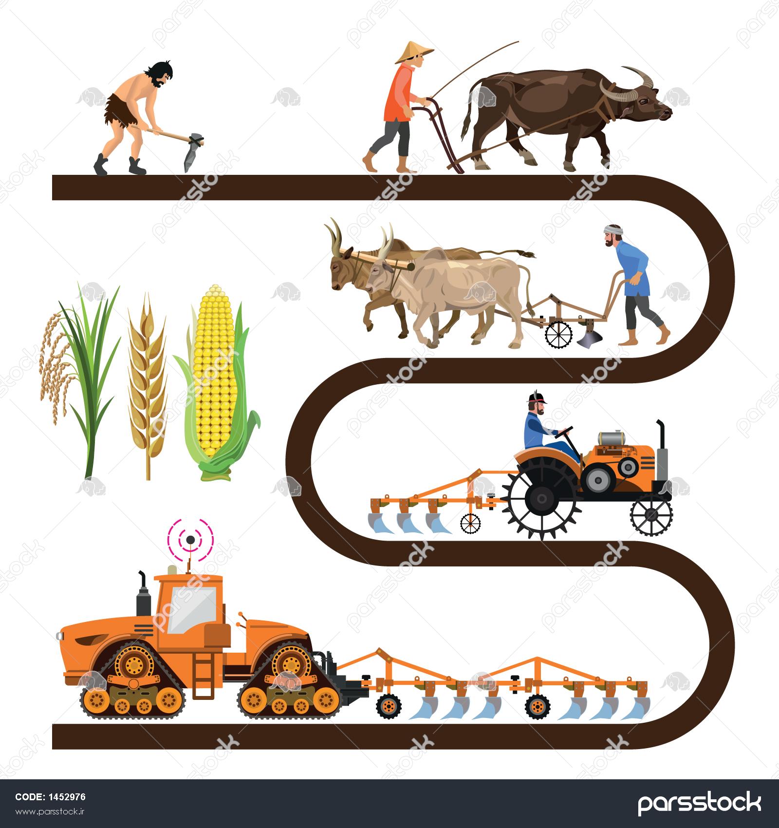 مجموعه ماشین های برداری بردار کشاورزان در شالیزار برنج برداشت می کنند تصویر برداری حیوانات مزرعه و بچه هایشان شتر گاو بز گوسفند و خوک تصویر وکتور جدا شده در پس زمینه سفید آبپاش های اتوماتیک آبیاری وکتور گلخانه ای با گوجه فرنگی و خیار تصویر برداری جدا شده بر روی زمینه سفید نمایش همه