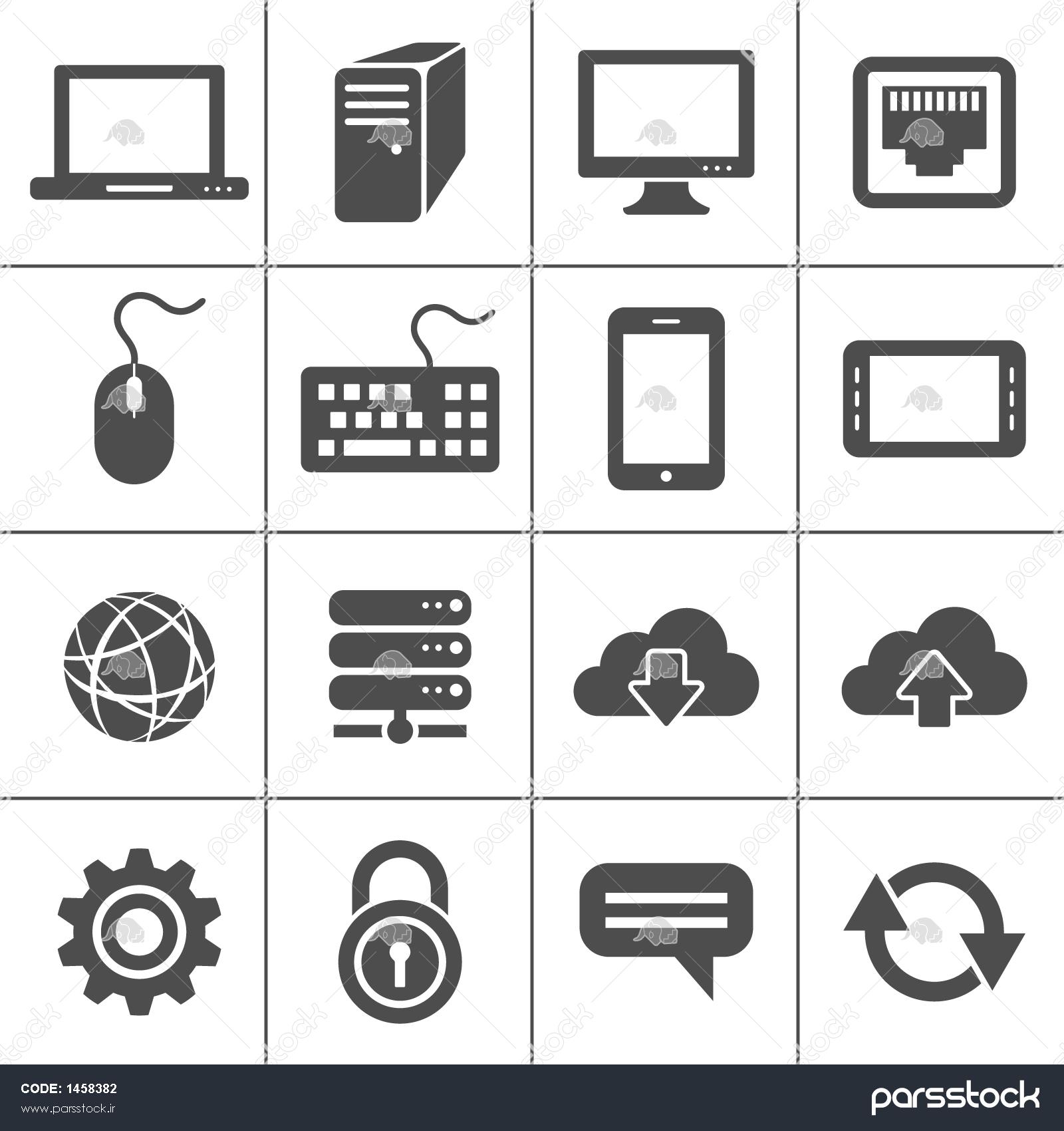 مجموعه آیکون های سری ساده دستگاه های شبکه و موبایل اتصالات شبکه