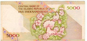 بیلی 5000 ریال ایران رنگهای سبز گلگون بژ
