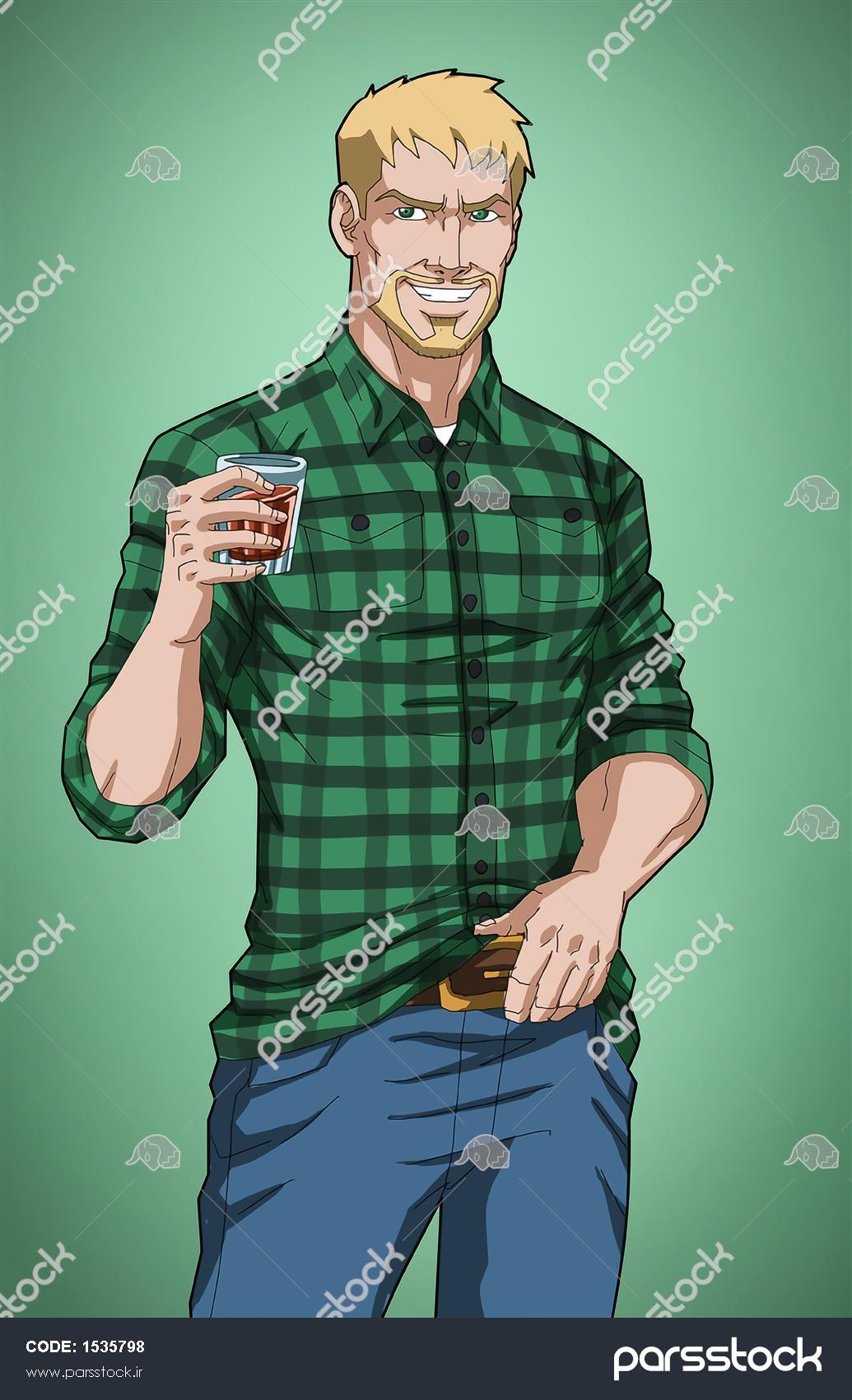 مرد بلوند پیراهن نوشیدنی نقاشی دیجیتال