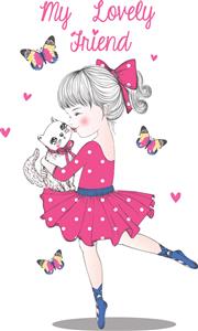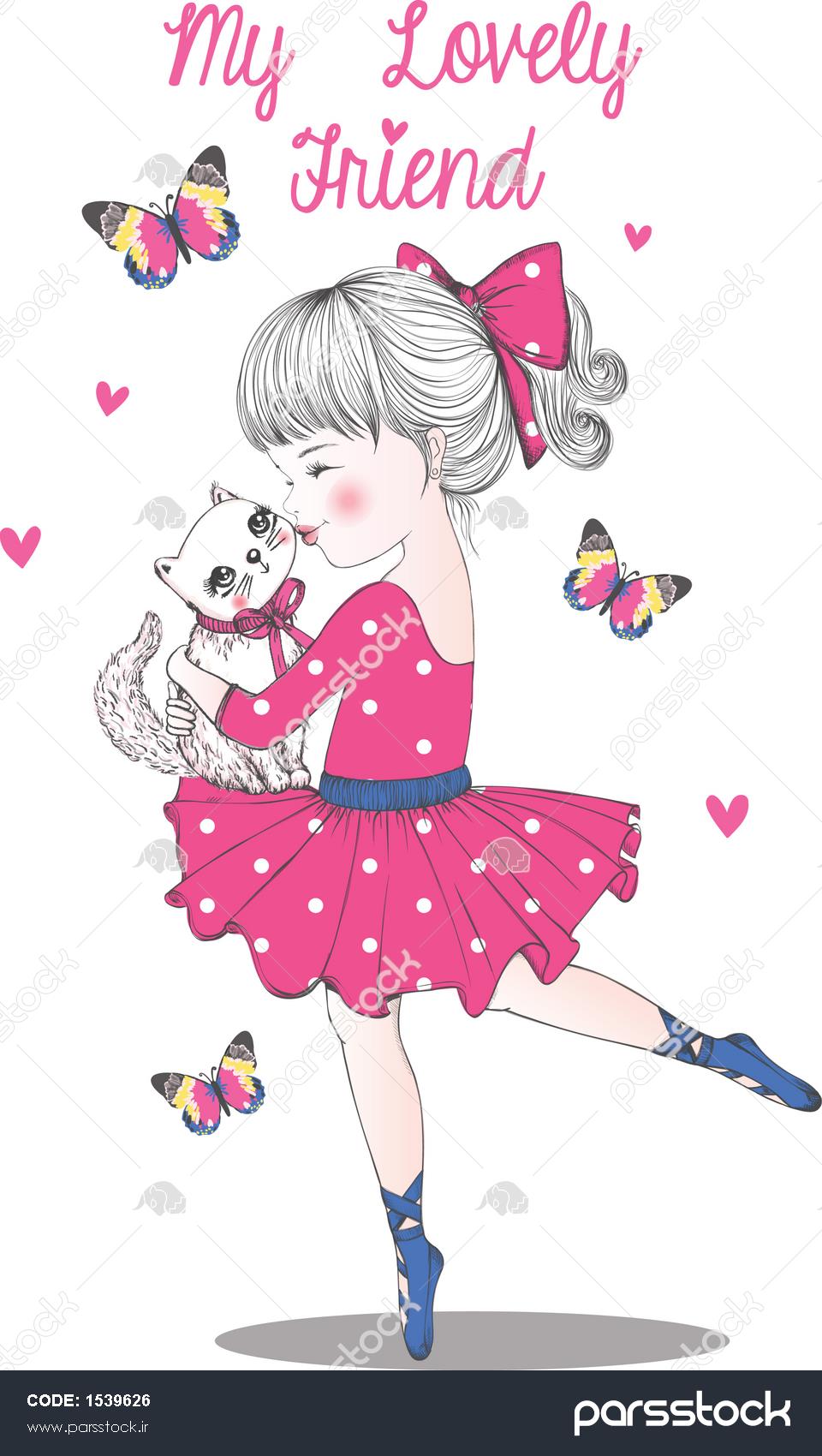 دختر ناز و دوستان گربه ناز وکتور تصویرگری طرح گرافیکی