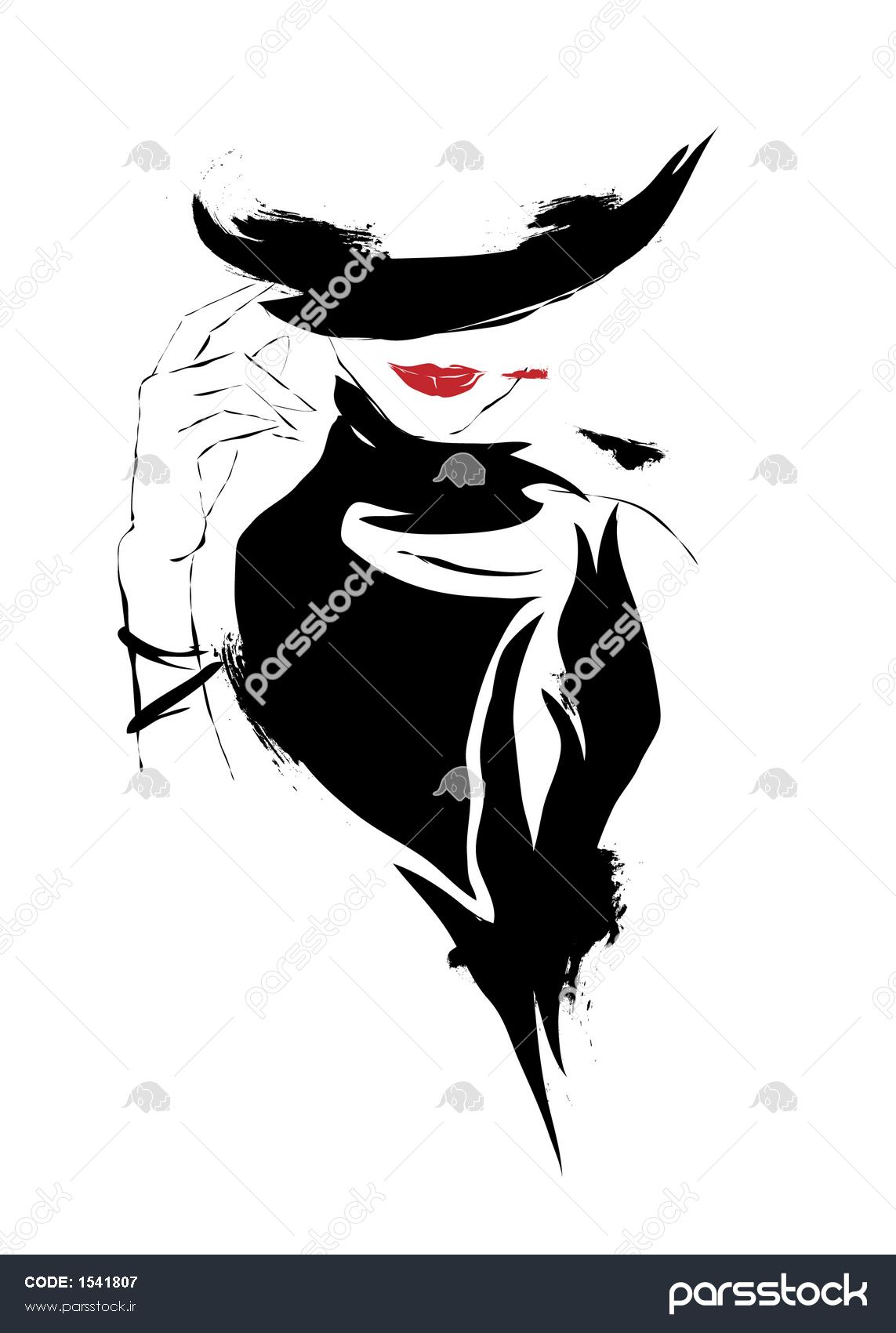 دختر مدرن طرح لب های قرمز پس زمینه سفید کلاه