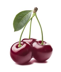 گیلاس وحشی قرمز براق در زمینه سفید به عنوان عنصر طراحی بسته جدا شده است