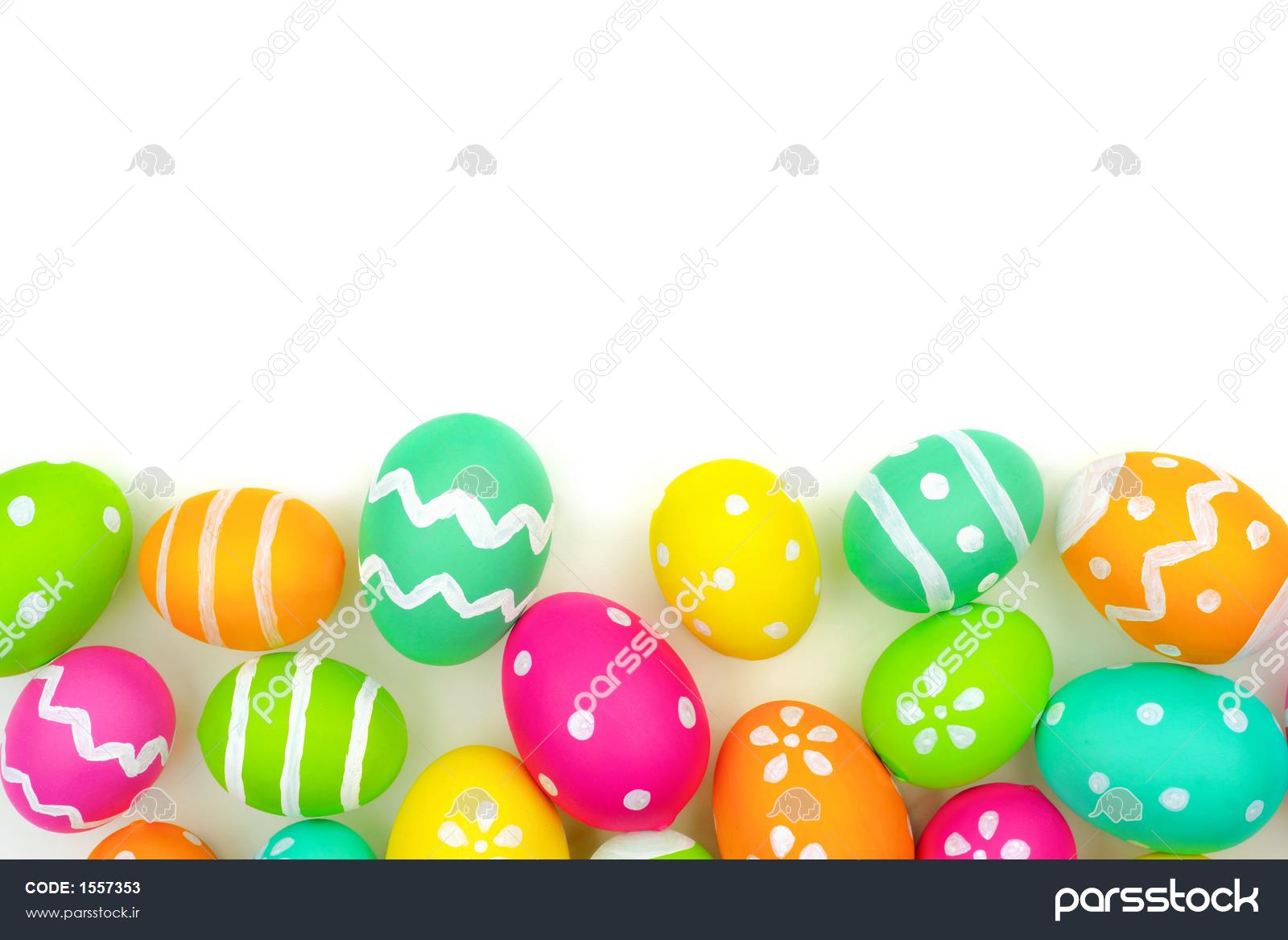 مرز پایین تخم مرغ عید پاک رنگارنگ در پس زمینه سفید