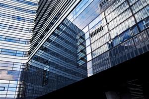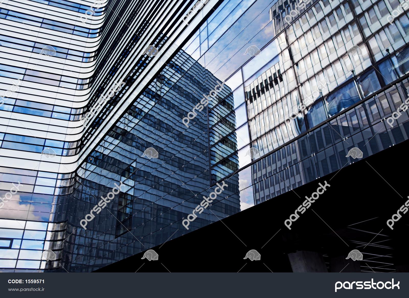 نمای کم زاویه از فضای داخلی ساختمان اداری مدرن