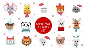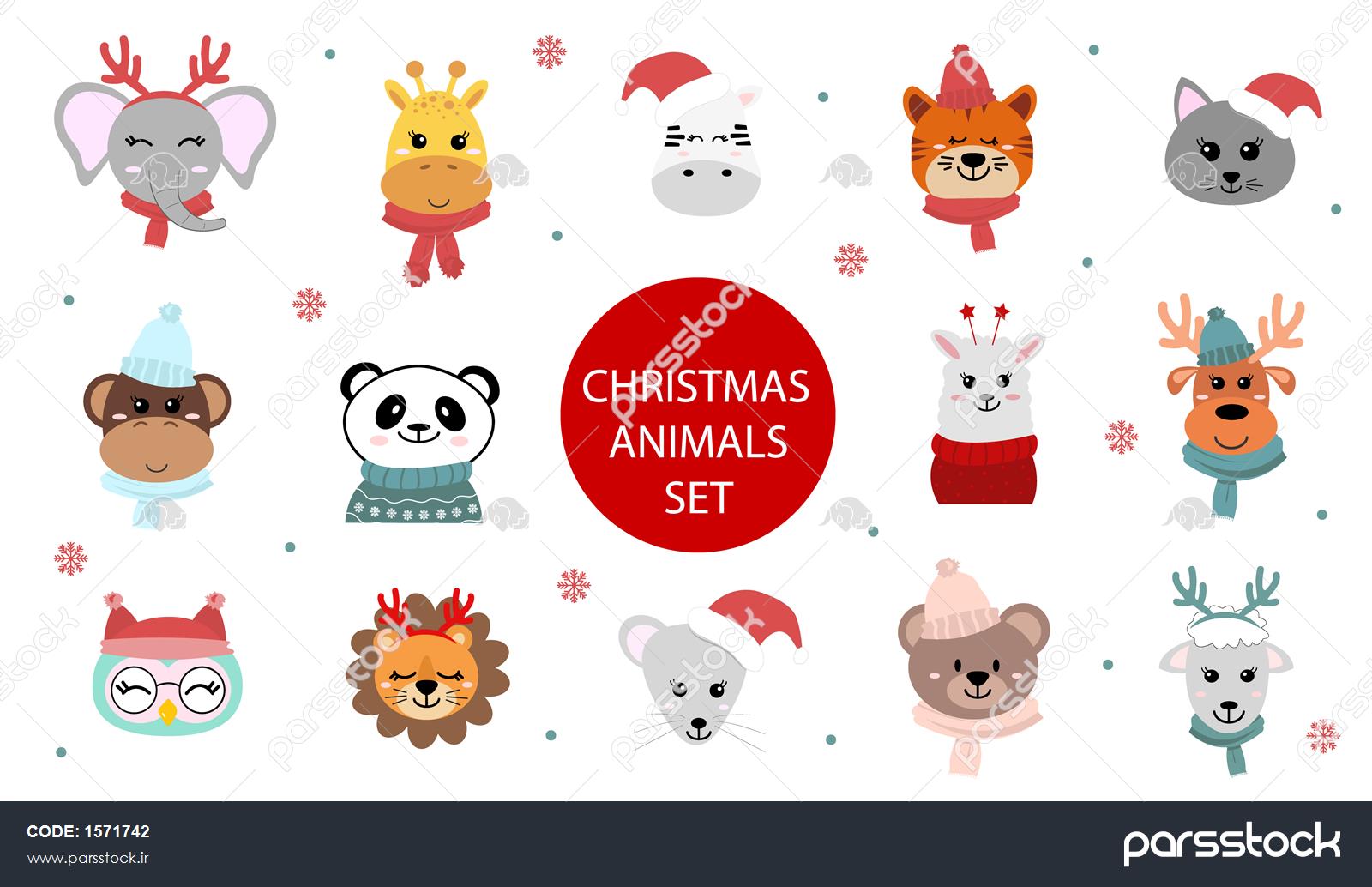 مجموعه ای از شخصیت های زیبا حیوانات کریسمس باغ وحش کارتونی تصویرسازی به سبک تخت حیوانات آفریقایی و سیبری