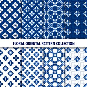 مجموعه الگوی بدون درز گل های شرقی هندسی آبی