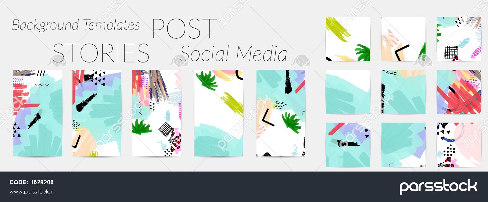 زمینه های خلاقانه برای رسانه های اجتماعی قالب های داستانی قابل ویرایش پسزمینههای تبلیغاتی با رنگهای روشن با دستنویس برای برنامههای رسانههای اجتماعی