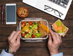 ناهار تجاری سالم در محل کار جعبه ناهار سالاد ماهی قزل آلا آووکادو و چیپس نان روی میز کار با لپ تاپ گوشی هوشمند لیوان زنی که روی میز اداری کار می کند و غذا می خورد استراحت قهوه و ناهار در باغ دفتر مرد در حال خوردن غذای سالم با ماهی کبابی در دفتر در وقت ناهار تلفن همراه برای تحویل آنلاین با فضای خالی تاجری که با لپتاپ و اسناد کار میکند روی میز اداری نشسته کارمند یا مدیر عامل شرکت با استفاده از نرمافزار برنامههای آنلاین در محل کار مردی با کت و شلوار در حال تایپ کردن روی کامپیوتر نمای بالای سر از بالا مدیر سخت کوش در حال خوردن ساندویچ در حین کار مردی پشت میز کارش در حال خوردن سیب در حین کار ناهار کاری و تاجری که میان وعده رنگارنگ در دست دارد تاجر عصبی مشغول کار با ساندویچ و لیوان همکاران در حال خوردن ناهار سالم در دفتر نمایش همه