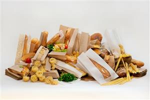 نان نان باگت بی جان و انواع دیگر در بسته بندی های کاغذی پاستا و کلوچه در کیسه های کاغذی سالاد و سبزیجات