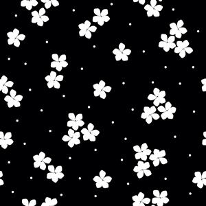 الگوی قدیمی بدون درز گل های سفید ناز و نقطه پس زمینه سیاه بافت برداری چاپ مد روز برای پارچه و کاغذ دیواری