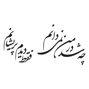 من چشم از او چگونه توانم نگاه داشت خوشنویسی شکسته نستعلیق شعر از سعدی من عاشقی از کمال تو آموزم بیت و غزل از جمال تو آموزم خوشنویسی شکسته نستعلیق شعر از مولانا تا ابد مهر تو بیرون نرود از دل من خوشنویسی شکسته نستعلیق شعر از مولانا دلم گرفته ای دوست هوای گریه با من خوشنویسی شکسته نستعلیق شعر از همایون شجریان بیا به صلح من امروز در کنار من امشب خوشنویسی شکسته نستعلیق شعر از سعدی گفتم غم تو دارم گفتا غمت سر آید گفتم که ماه من شو گفتا اگر برآید خوشنویسی شکسته نستعلیق شعر از حافظ من آن شب چراغ سحرگاهیم که روشن کن از ماه تا ماهیم خوشنویسی نستعلیق شعر از فردوسی تمام ناتمام من با تو تمام میشود خوشنویسی شکسته نستعلیق من تشنه نغمه های جادوی توام خوشنویسی شکسته نستعلیق عاشقی را چه نیاز است به توجیه و دلیل که تو ای عشق همان پرسش بی زیرایی خوشنویسی شکسته نستعلیق شعر از قیصر امین پور نمایش همه