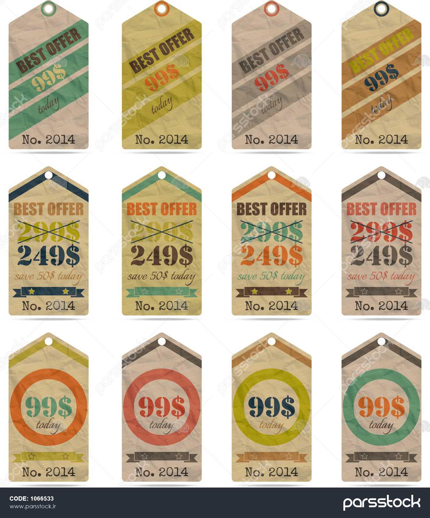 برچسب های قیمت کاغذ قدیمی با مجموعه آیکون های پیشنهاد ویژه