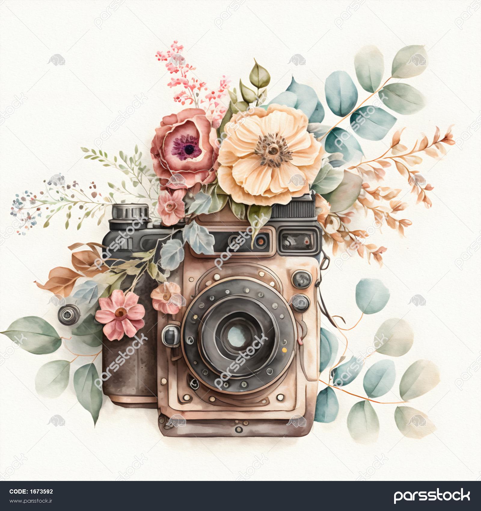 دوربین یکپارچهسازی با سیستمعامل در گل و گیاه از دوربین عکاسی دستی می تواند به عنوان لوگوی چاپی برای کارت های دعوت عروسی تصویر آبرنگ استفاده شود