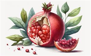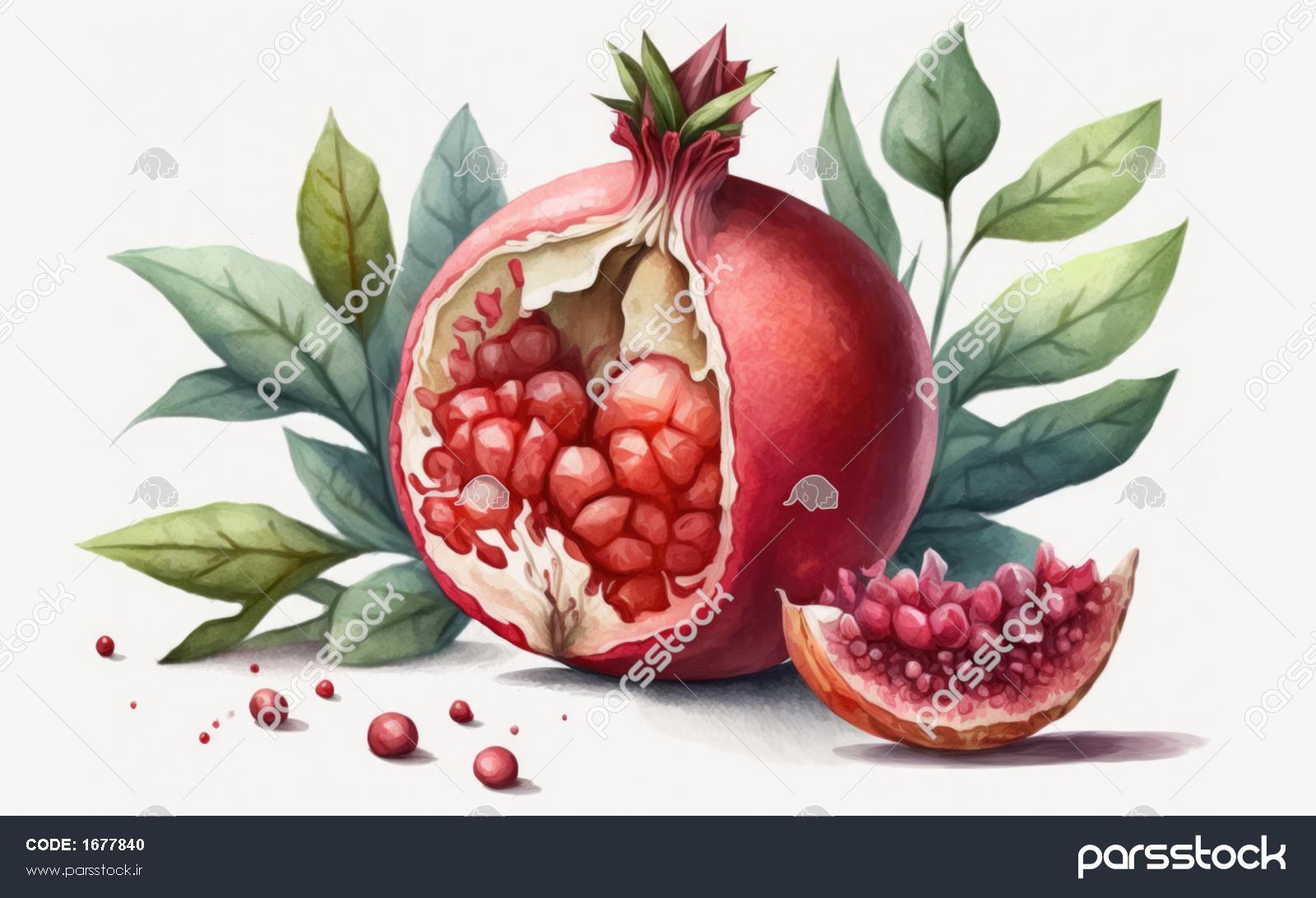 یک انار کشیده روی پس‌زمینه سفید آبرنگ میوه‌های ارگانیک تصاویر مواد غذایی تولید شده است