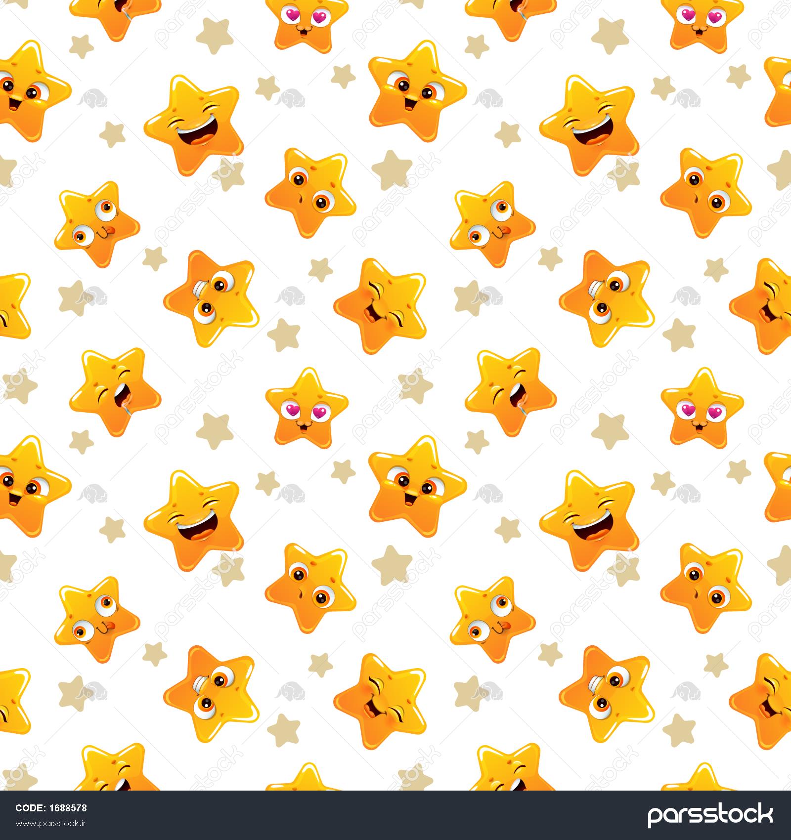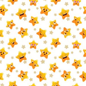 الگوی بدون درز کودکانه با ستاره های زرد خنده دار در پس زمینه سفید الگوی بافت وکتور برای طراحی پارچه بازی یا تایپوگرافی بافت بی پایان کارتونی برای چاپ بدون درز