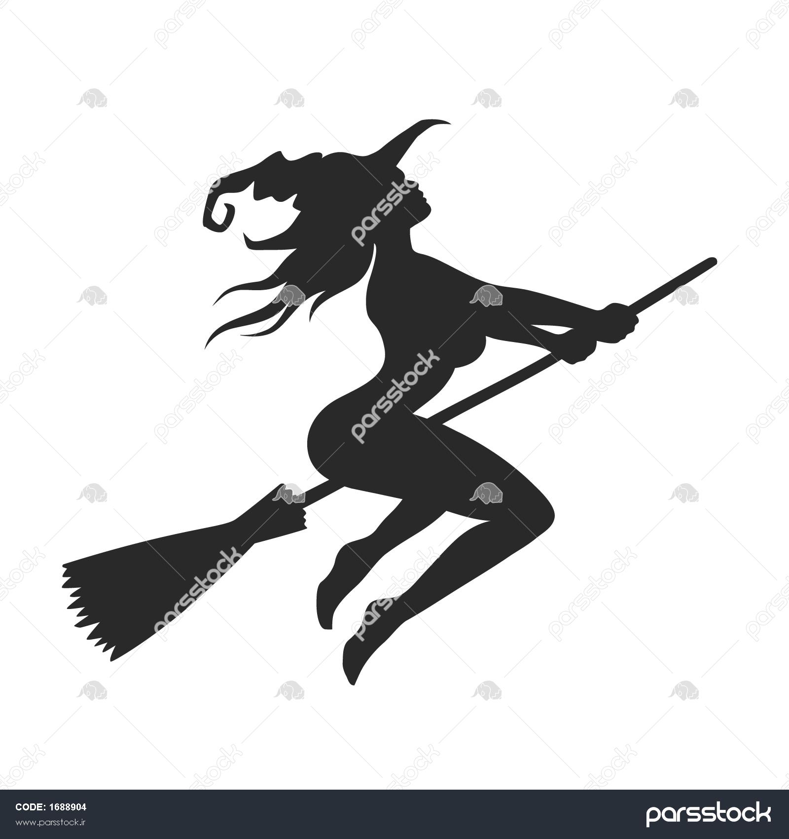 جادوگر جوان با شکل های خوب که روی چوب جارو پرواز می کند شبح جادوگر سیاه جدا شده روی سفید کلیپرت برداری