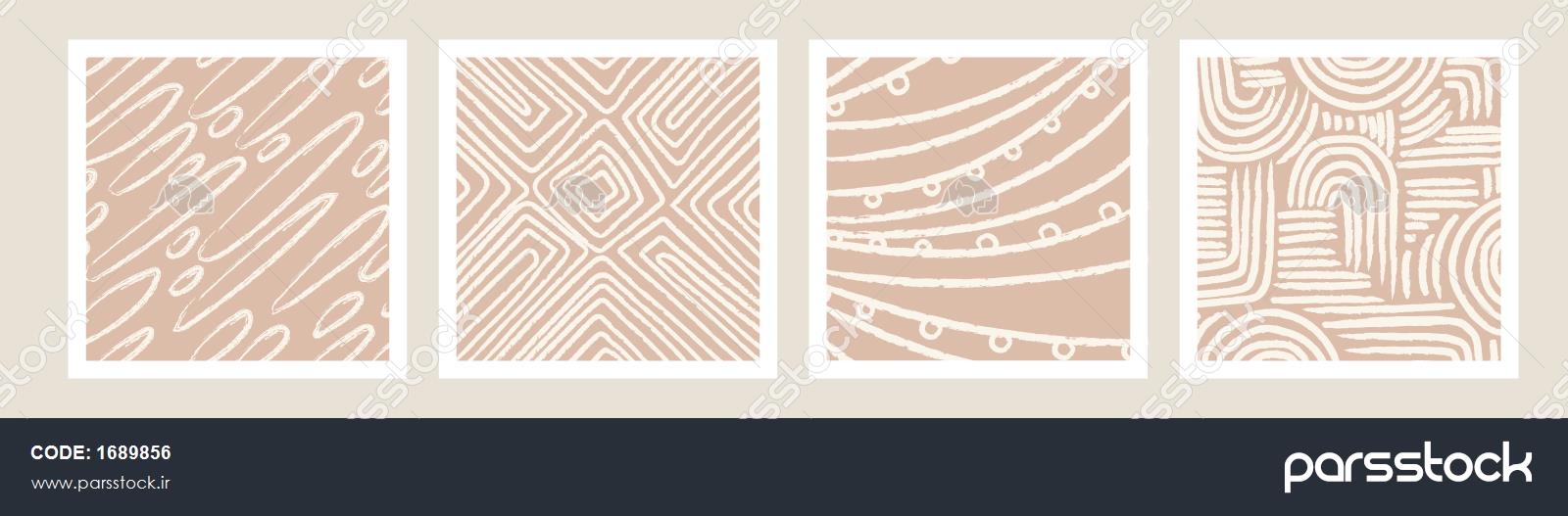 پسزمینه بوهو پاستلی در تصویر برداری سبک مینیمالیستی اواسط قرن مجموعه ای از الگوی بدون درز قابل چاپ معاصر زیبایی با خطوط انتزاعی خط قلم مو و خط در رنگ های برهنه