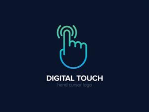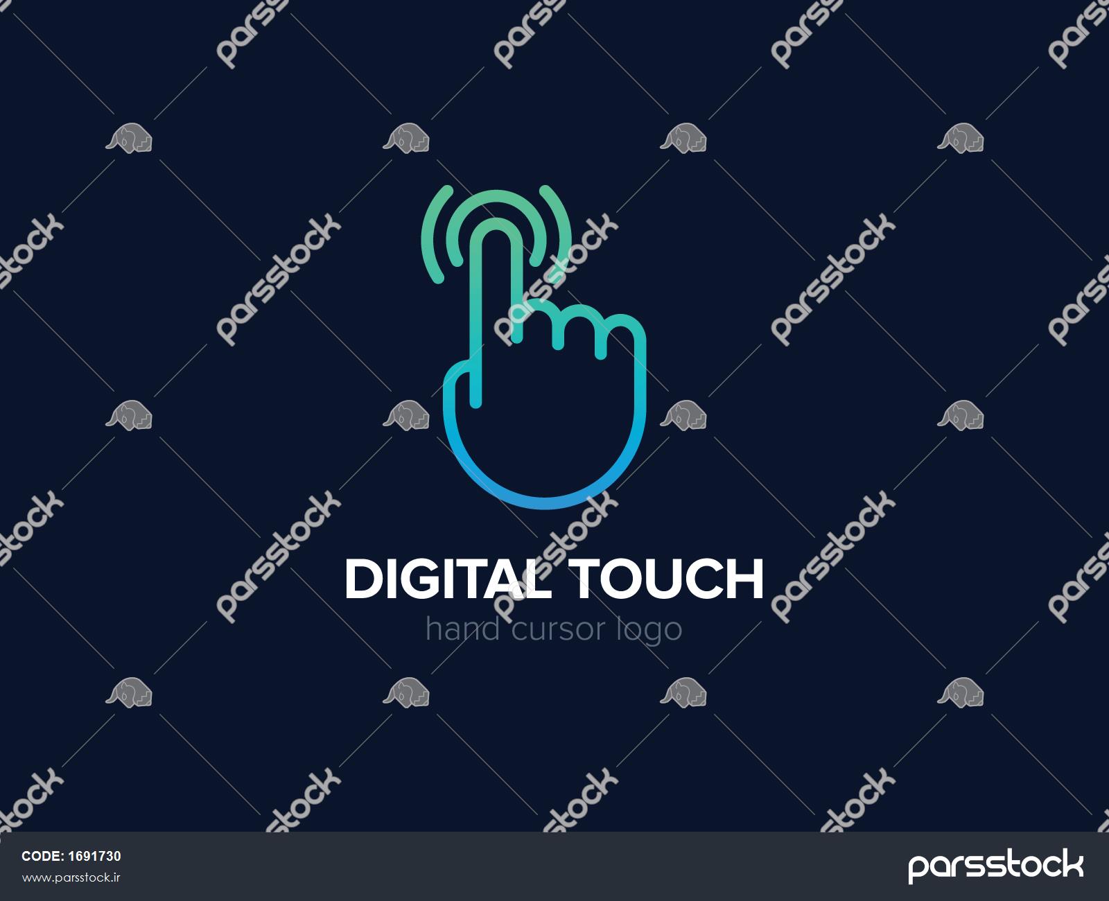 مفهوم لوگو مکان نما دست لوگوی دیجیتال لمسی نماد کلیک بردار نماد ضربه روی صفحه نمایش لوگوی خلاقانه وکتور سبک خطی علامت فن آوری مدرن تلفن همراه نشان گرافیکی برای هویت تجاری شرکت