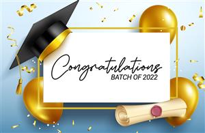 طراحی قالب وکتور پیام های فارغ التحصیلی دسته ای از متن تبریک سال 2022 در فضای تخته سفید با کلاه سه بعدی دیپلم و بادکنک برای تبریک جشن فارغ التحصیلی تصویر برداری