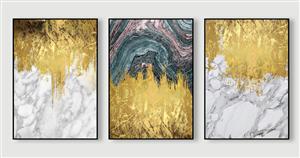 مجموعه ای از سه پس زمینه طلایی انتزاعی نقاشی رنگ روغن با دست آزاد پس زمینه هنری انتزاعی رنگ روغن روی بوم بافت طلایی لکه ها را رنگ کنید ضربه های قلم مو رنگ هنر مدرن هنر مدرن بوم رنگارنگ
