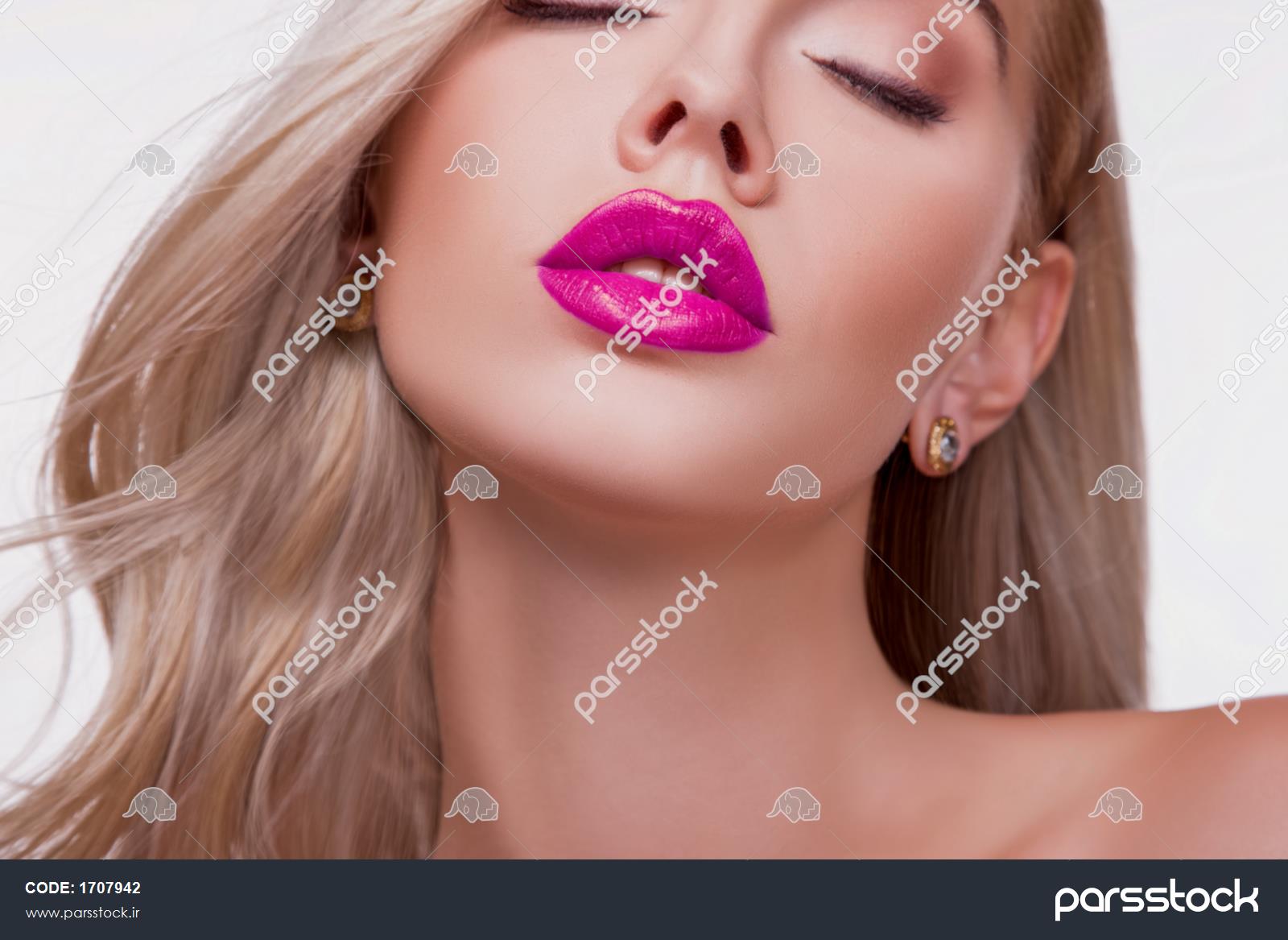 نمای نزدیک از لب های زن زیبا با رژ لب براق صورتی لب های بزرگ آرایش لب براق زیبا براق کننده لب ماندگار دهان باز با دندان های سفید شات استودیو زیبایی بوسه ای پر احساس