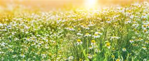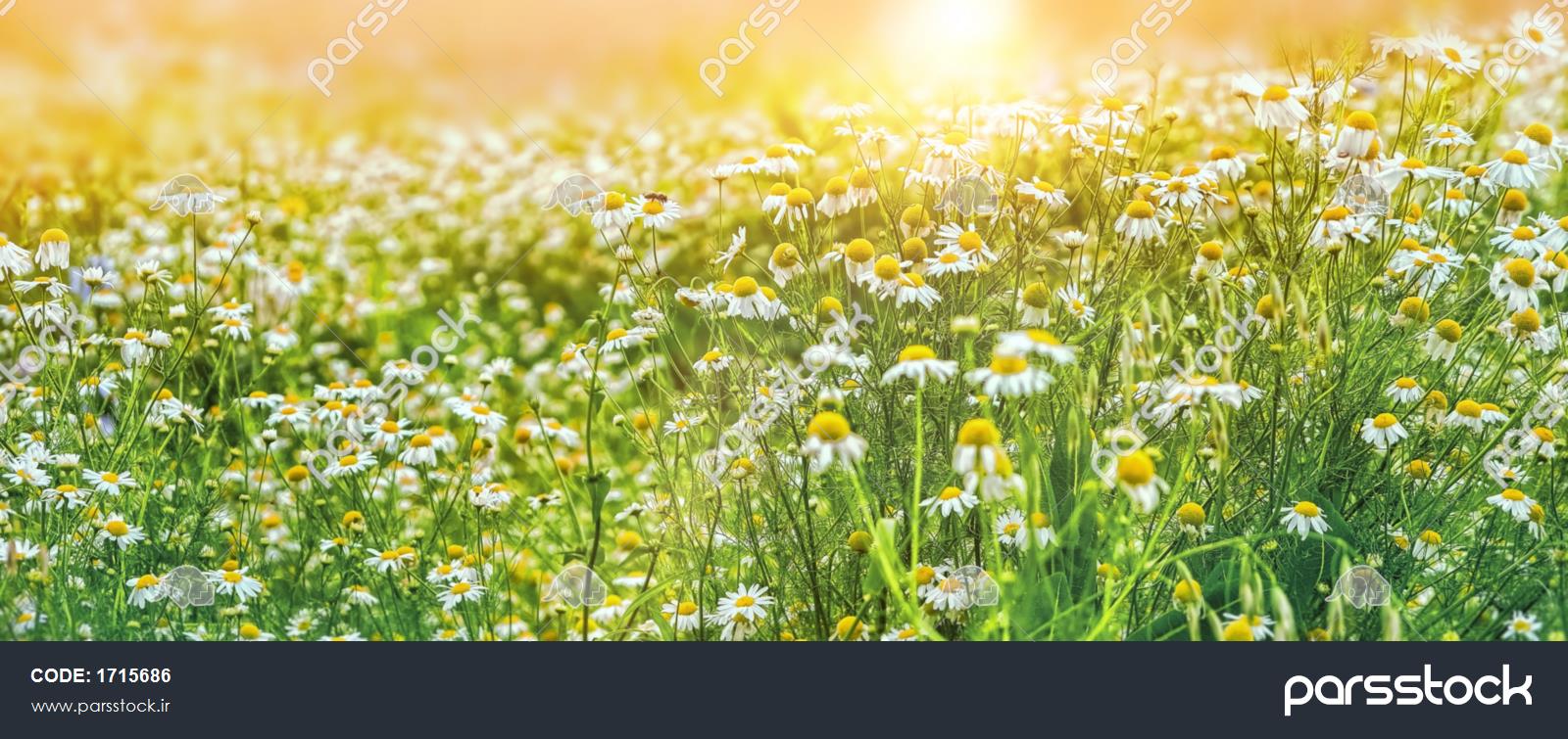 منظره زیبای روستایی با گل های بابونه پس زمینه طبیعی آفتابی انتزاعی مفهوم زیبایی و خلوص طبیعت فصل تابستان بنر