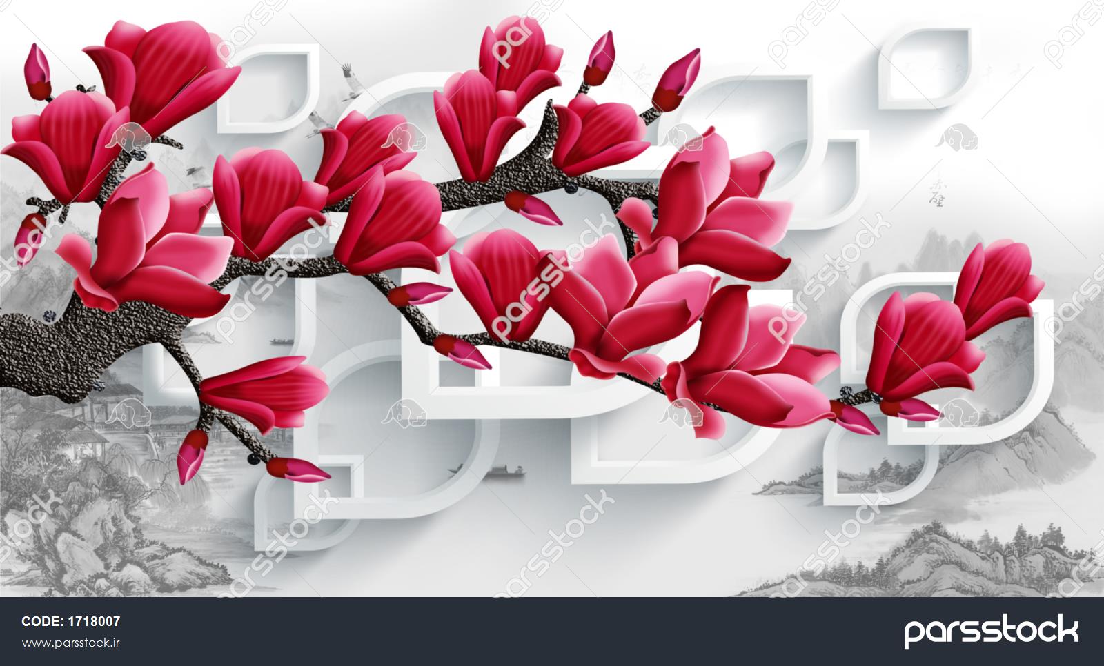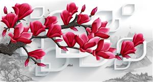 تصویر سه بعدی - گل هایی با پس زمینه انتزاعی