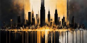 پوستر دیواری تصویرسازی دیجیتال انتزاعی مدرن هندسی منظره شهری طلایی چشمگیر