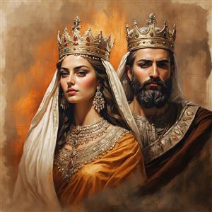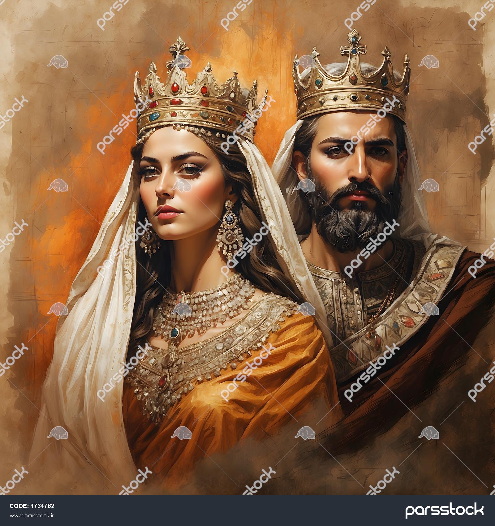 پرتره شاه داریوش سوم و ملکه استاتیرا (دختر داریوش سوم) هخامنشی